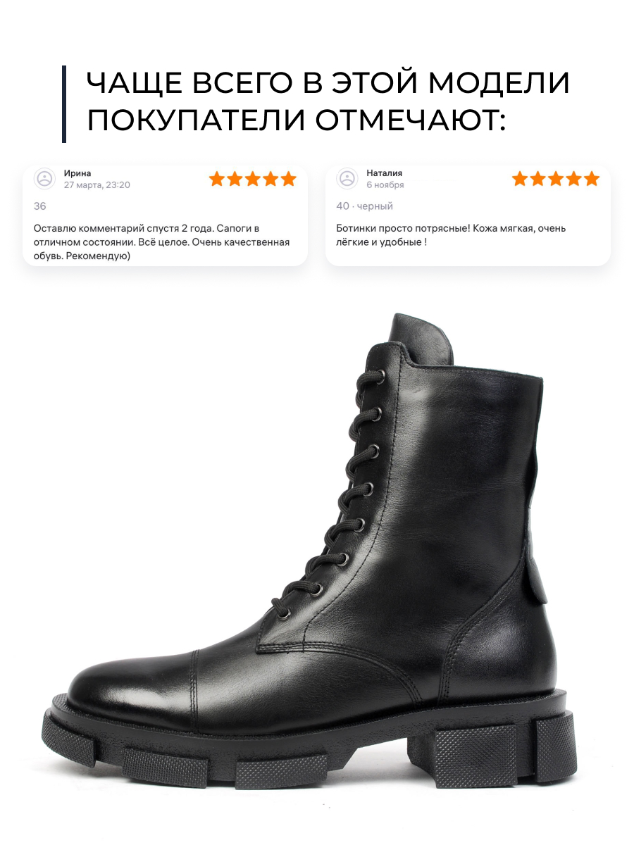 Сами ботинки очень удобные, но смутило то что кожа именно на мысках блестит очень, и не много отличается от всей остальной! После первого дня носки, появились заломы, и ощущения, что на заломах кожа пузыриться, как будто клеёнка! Не хотелось бы, чтобы она лопнула!