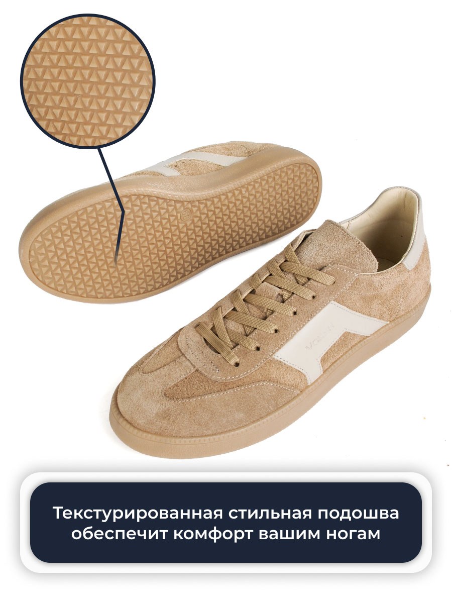 Женские бежевые кеды из натуральной кожи и замша