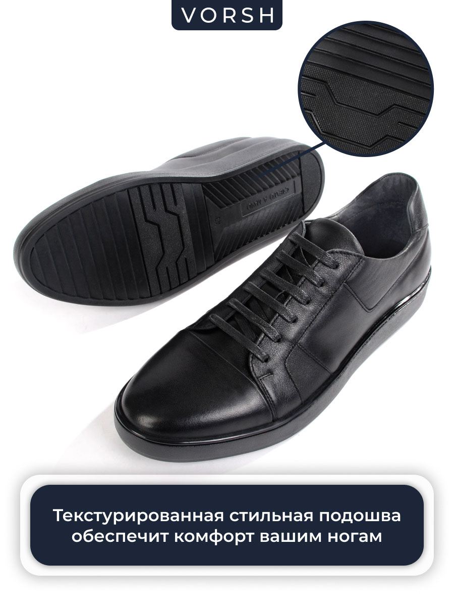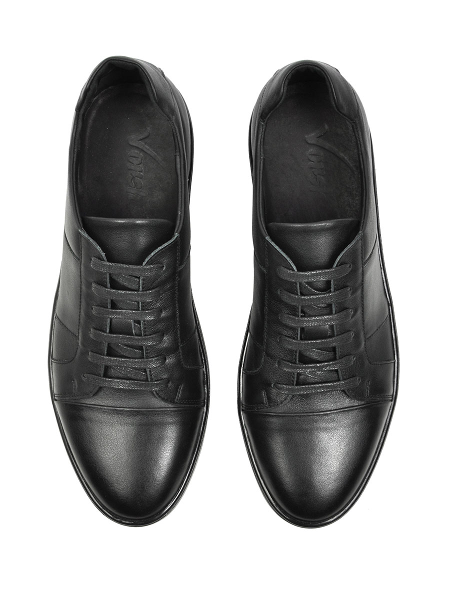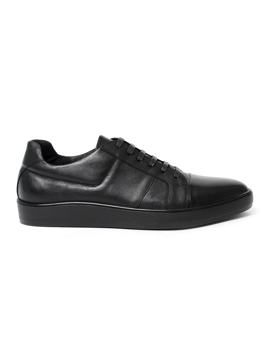 Черные мужские кеды на черной подошве из натуральной кожи