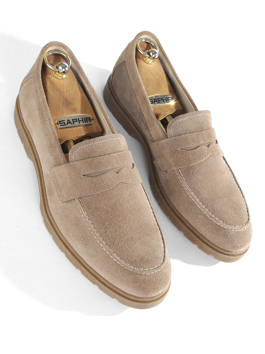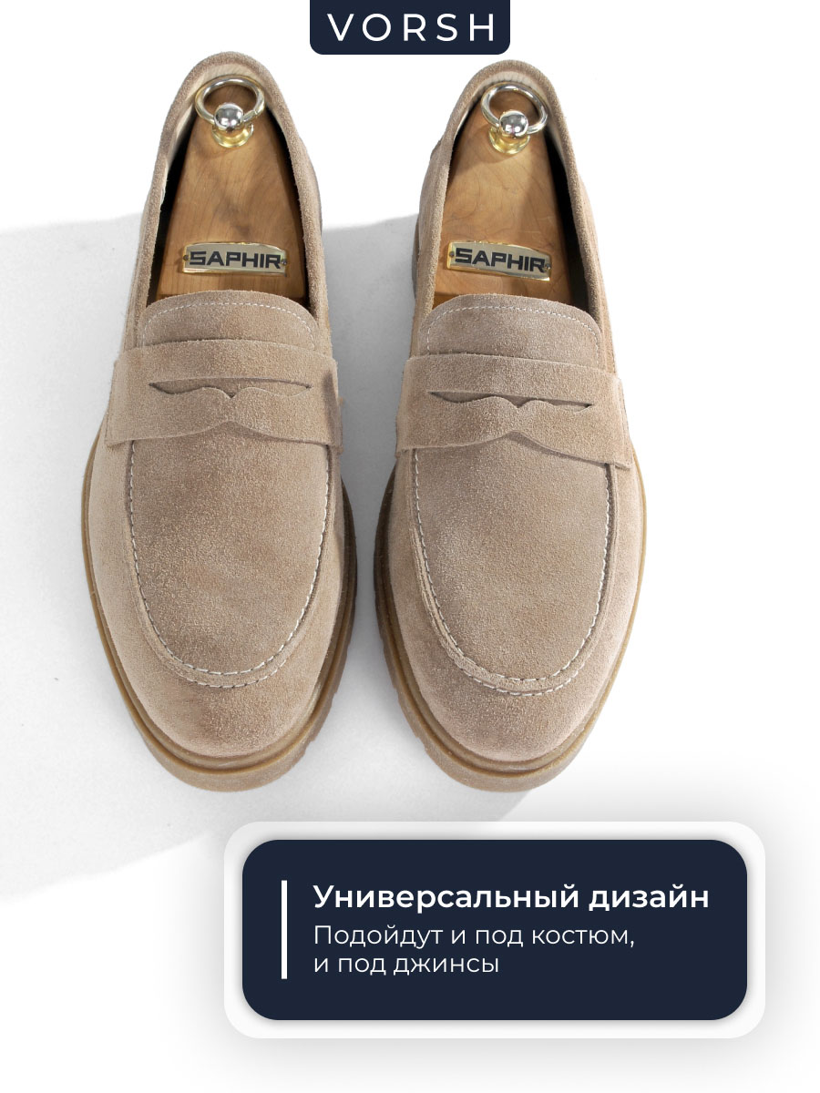 Мужские лоферы темно-бежевого цвета из натуральной замши