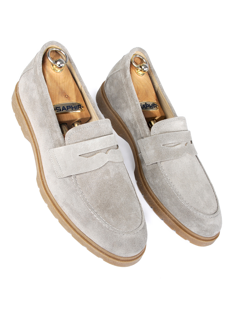 Мужские лоферы серового цвета из натуральной кожи